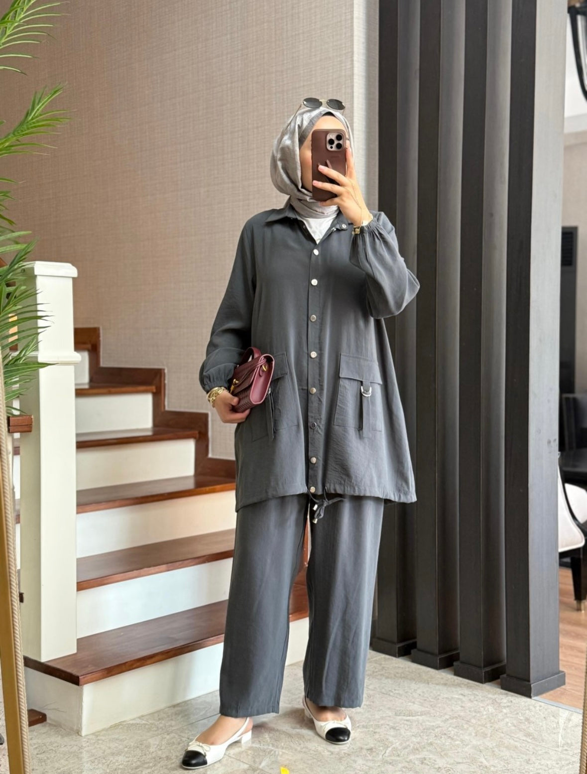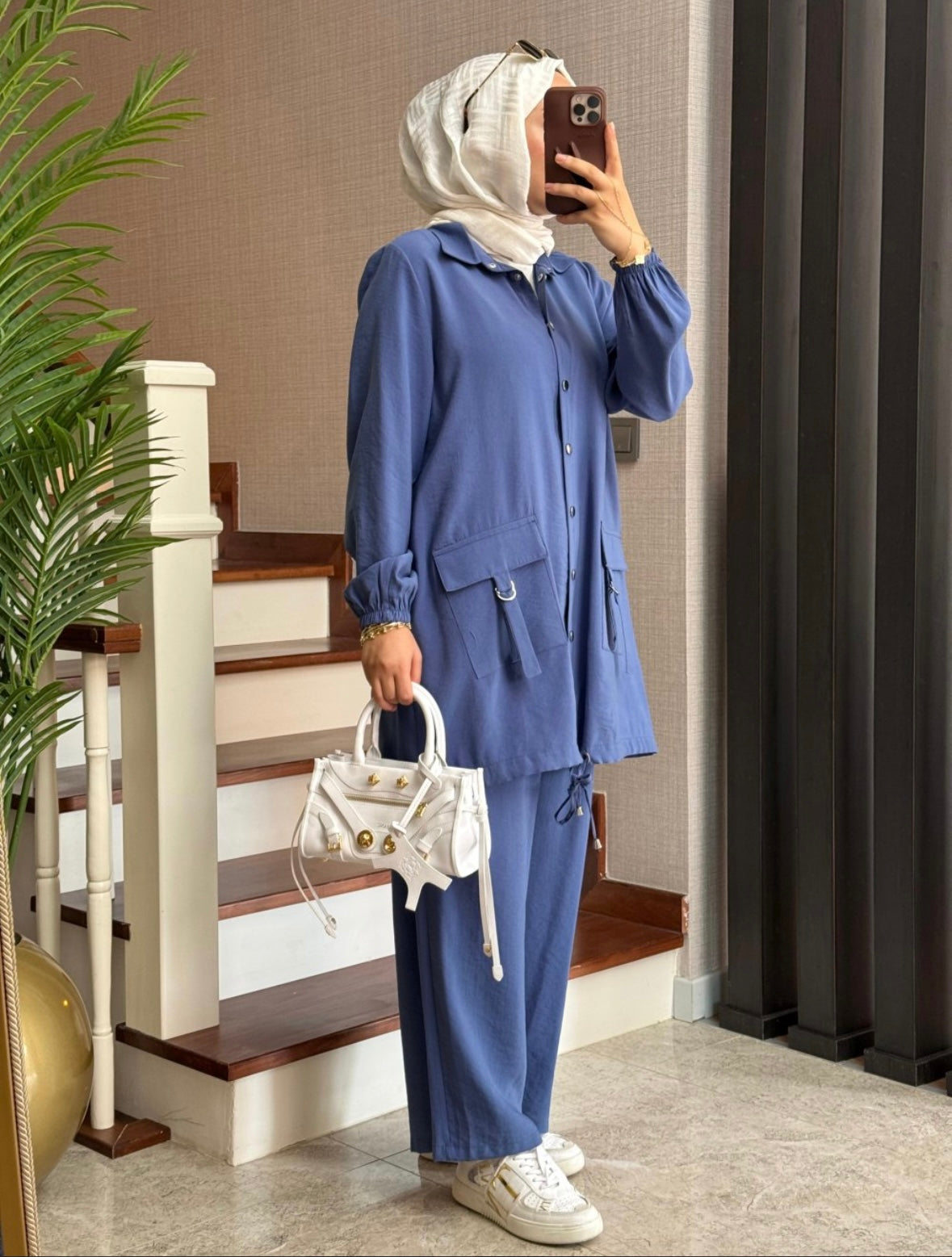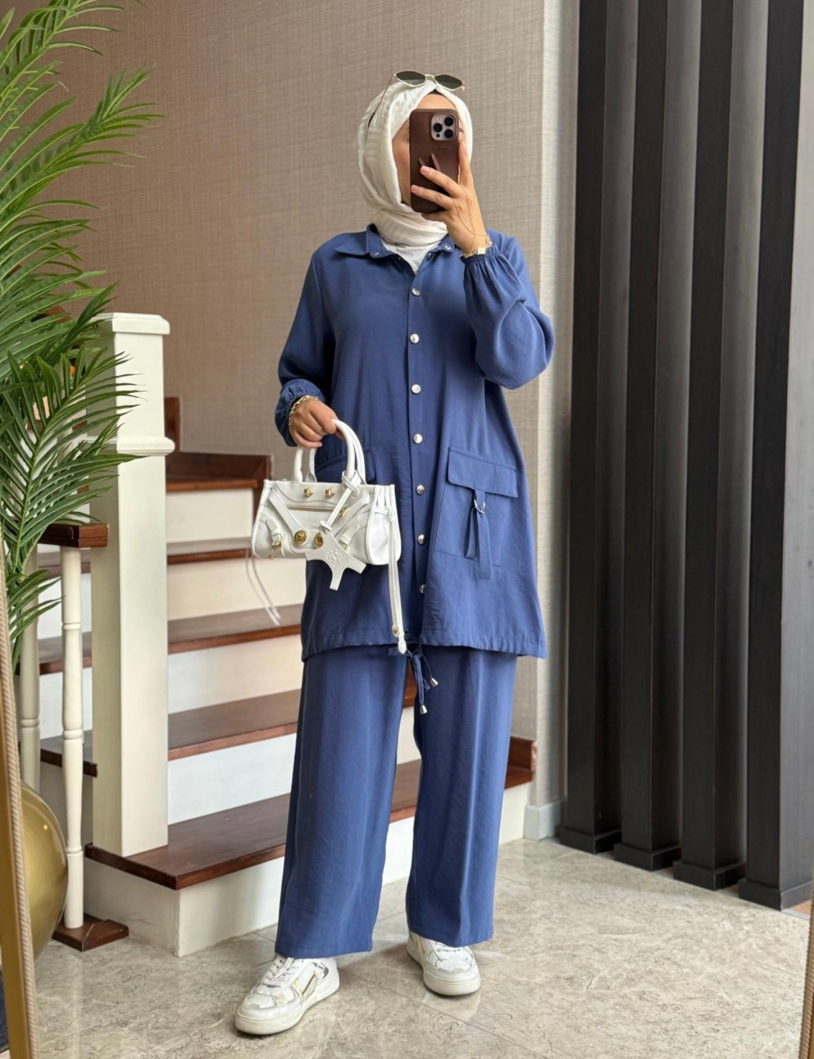 Tunik Etek Ucunda bağcık ip detayları mevcuttur.