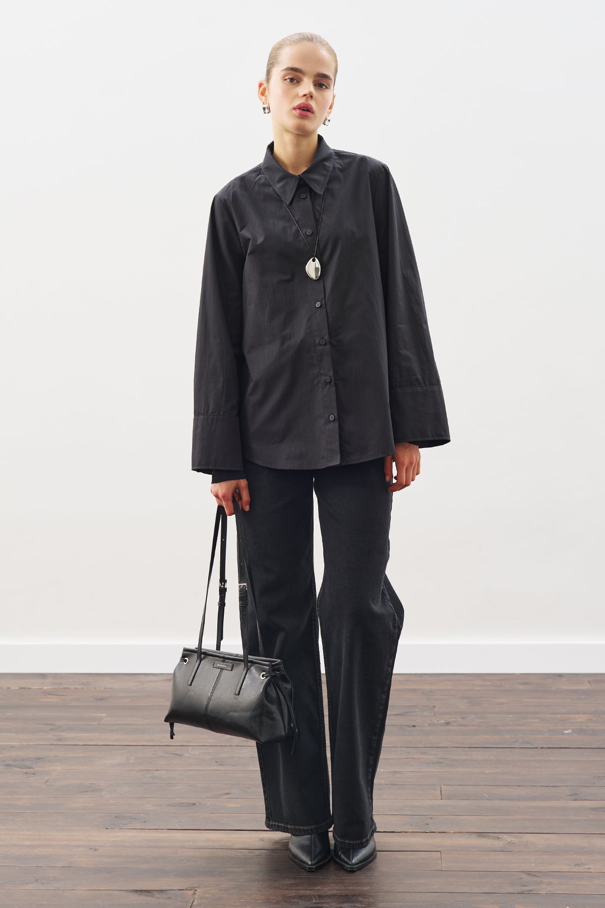 Manuka Hemd mit weitem Kragen Schwarz