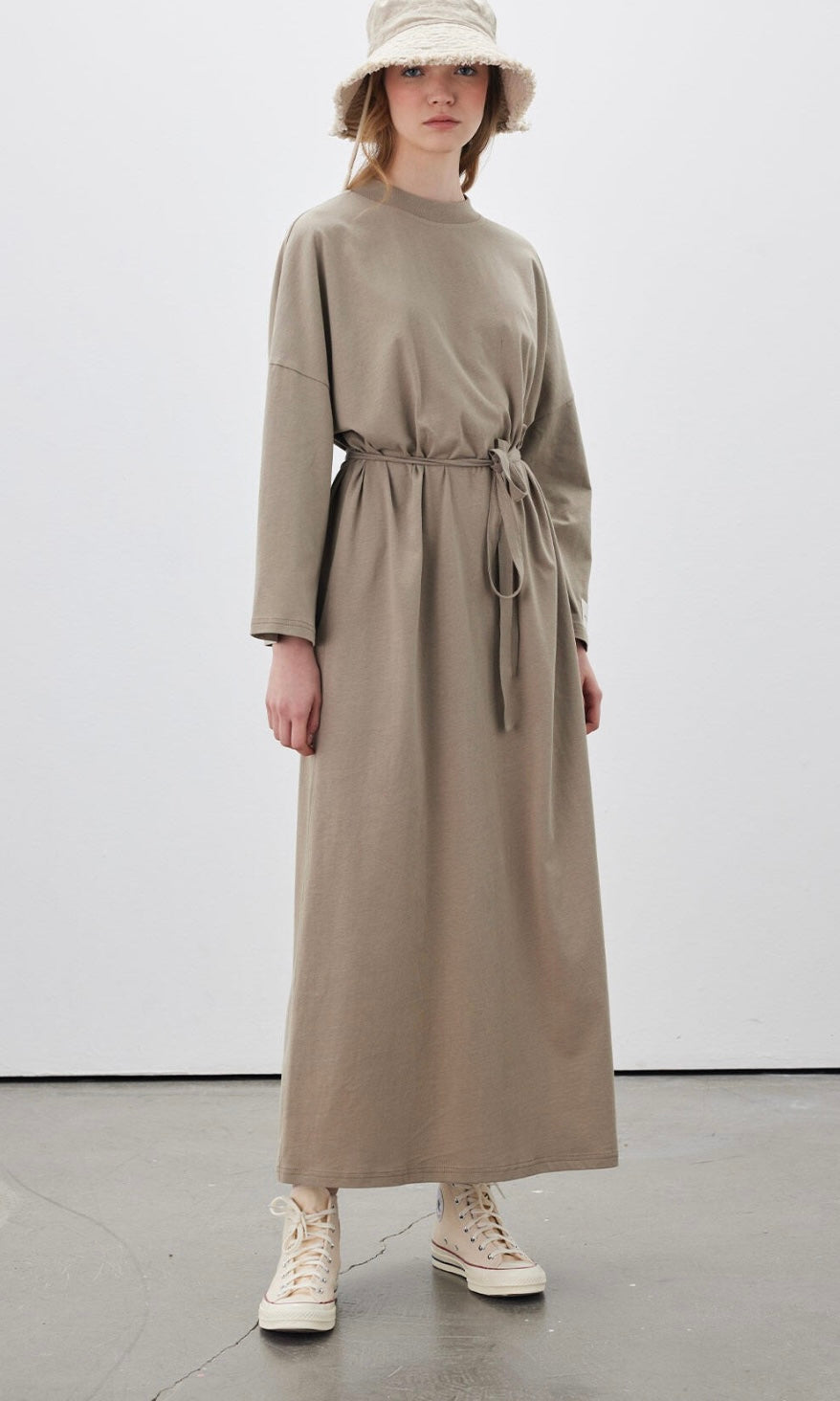 Yuvarlak Yaka, Düşük Omuz, Geniş Kol, Kuşak Bağlamalı.