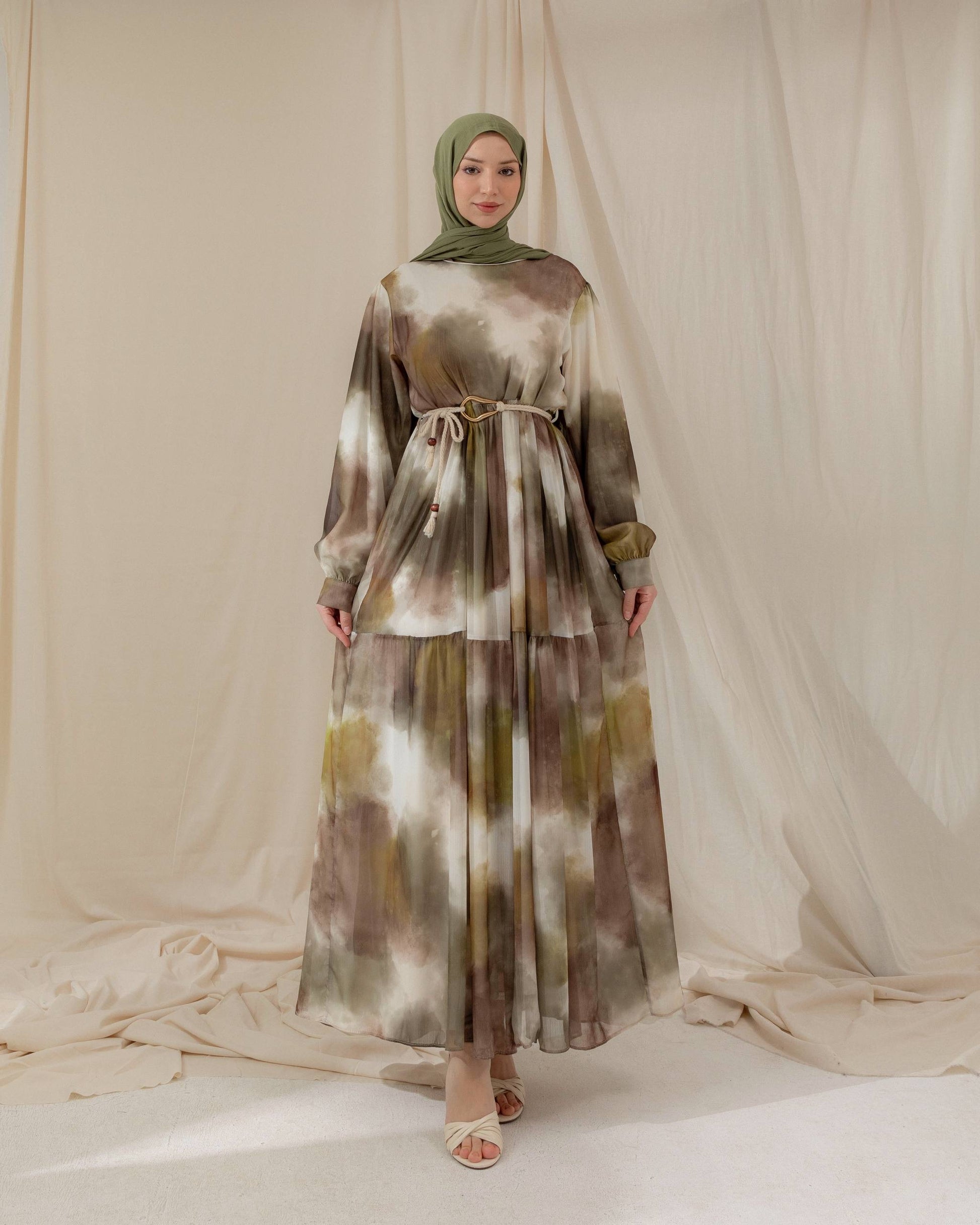 MeriStore Kleid 6464 Khaki mit Gürtel